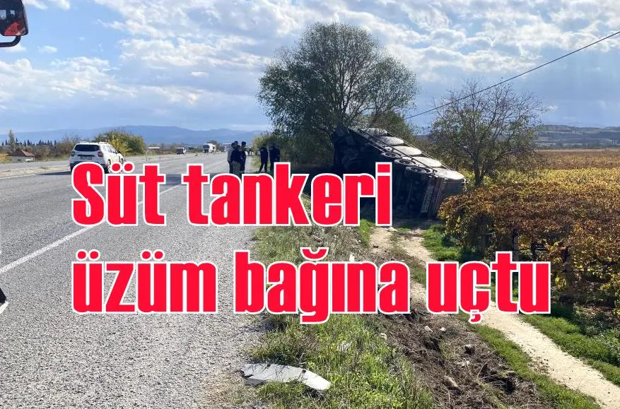 Manisa'nın Alaşehir ilçesinde meydana gelen trafik kazasında süt tankeri şarampole devrilerek üzüm bağlarına uçtu.