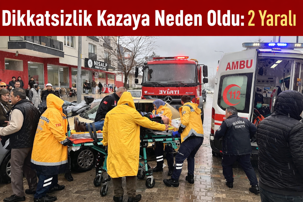 Kaza saat, 15.00 sıralarında 4 Eylül Mahallesi Mehmet Akif Ersoy Caddesi üzerinde meydana geldi. Edinilen bilgilere göre Adil E. idaresindeki 45 RY 288 plakalı otomobil U dönüşü yaptığı esnada, cadde üzerinde seyir halinde olan Yiğit G. idaresindeki 45 ACG 202 plakalı otomobil ile çarpıştı. Çarpışmanın ardından 45 ACG 202 plakalı otomobil yol kenarında park halinde duran otomobile çarparak durabildi. Kazayı gören vatandaşların 112 Acil Çağrı Merkezi'ne bildirmesi üzerine olay yerine itfaiye, ambulans ve polis ekipleri sevk edildi. Çarpışmanın etkisiyle her iki otomobilin sürücüsü yaralanırken, olay yerinde yapılan ilk müdahalelerinin ardından yaralılar Kula Devlet Hastanesi'ne kaldırıldı. Öte yandan kaza anı, bölgede bulunan bir işletme ve siteye ait güvenlik kamerası görüntülerine yansıdı.