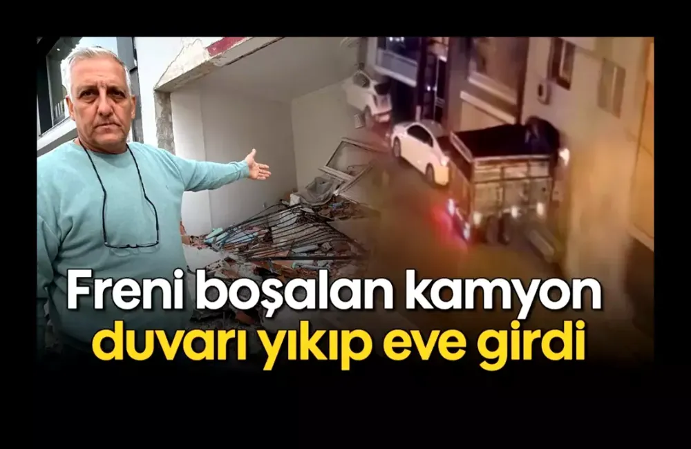 İzmir'in Bayraklı ilçesinde freni boşalan bir kamyon, hızla ilerleyerek sokağın sonunda bulunan bir apartmanın giriş katındaki daireden içeri girdi. Kazada şans eseri can kaybı yaşanmazken, evin oturma odasının duvarı yıkıldı. Mahalle sakinleri, bu yolun sürekli tehlike saçtığını belirterek belediyeye tepki gösterdi.