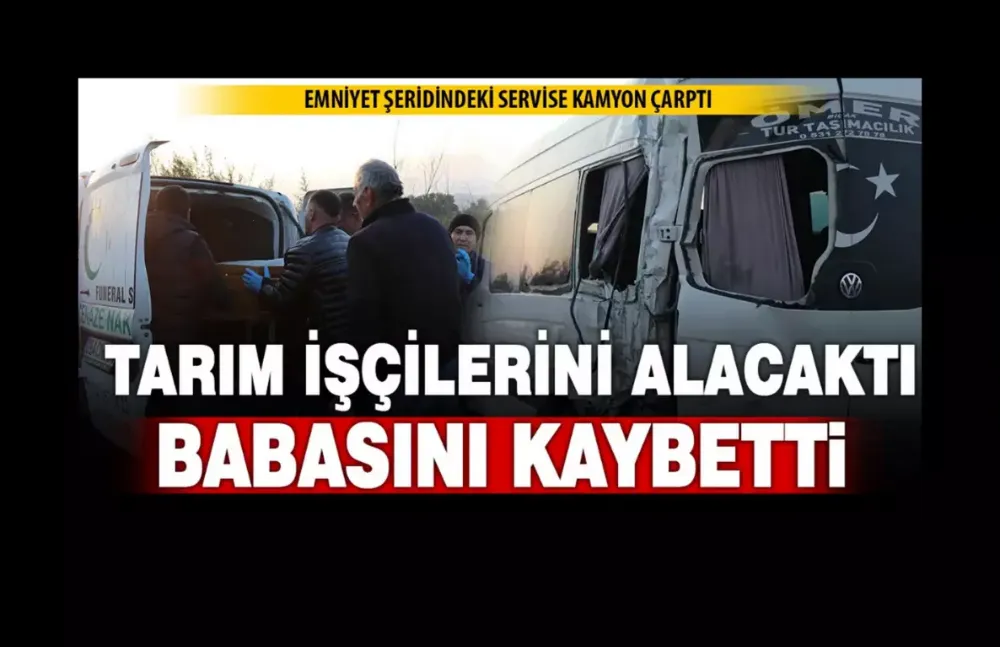 Denizli'de işçi almak için çevreyolu üzerinde emniyet şeridinde bekleyen servise, aynı yönden gelen kamyon çarptı. Kazada servis şoförünün babası hayatı hayatını kaybetti.