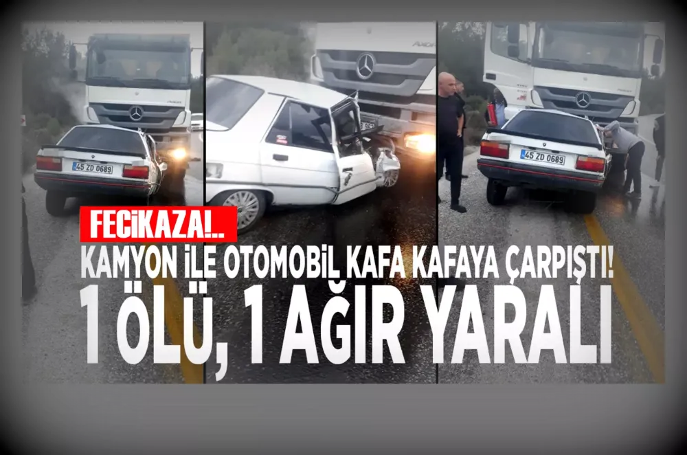 Manisa’nın Akhisar ilçesinde kamyon ile otomobilin kafa kafaya çarpışması sonucu meydana gelen kazada 1 kişi hayatını kaybetti, 1 kişi ağır yaralandı.