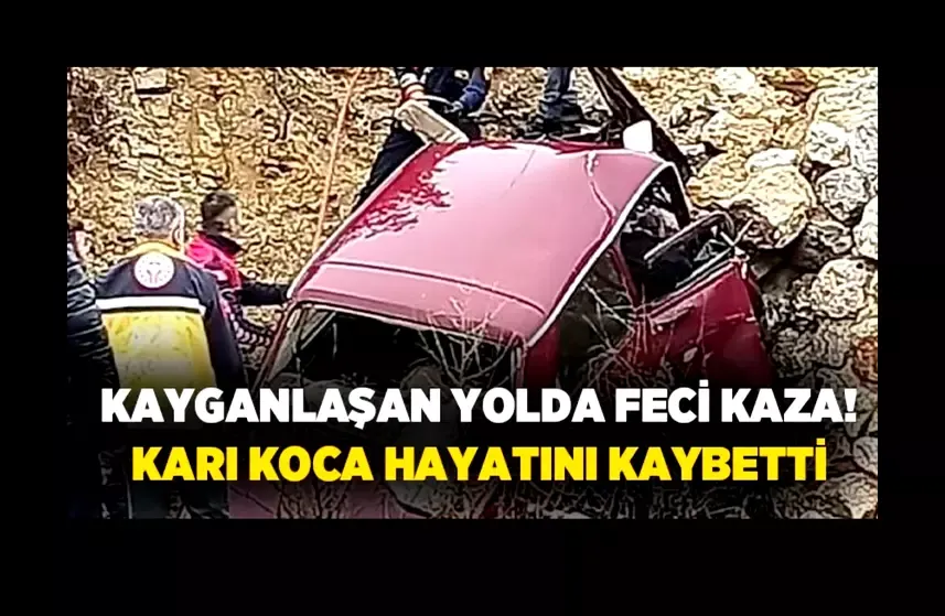 Kayganlaşan yolda otomobil istinat duvarına çarptı: Karı koca hayatını kaybetti
