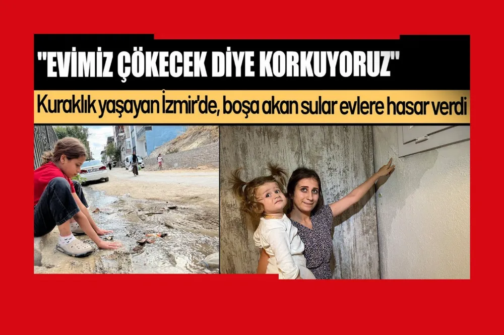 İzmir'in Karabağlar ilçesinde patlayan su borusu nedeniyle evleri su basan mahalle sakinleri, günlerdir çözüm beklediklerini söyledi. Kuraklık yaşayan kentte tonlarca suyun boşa aktığını belirten vatandaşlar, "Evimiz çökecek diye korkuyoruz" diyerek İZSU'ya tepki gösterdi.