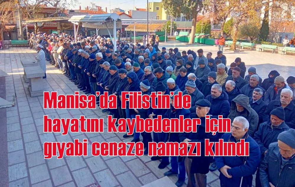 Manisa’da sivil toplum kuruluşları ve vatandaşlar, İsrail’in Gazze’ye yönelik saldırılarında hayatını kaybeden Filistinliler için gıyabi cenaze namazı kıldı.