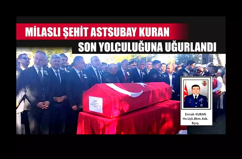 Azerbaycan'dan Türkiye'ye gelmek üzere 11 Kasım'da havalanan askeri kargo uçağının Gürcistan-Azerbaycan sınırında düşmesi sonucu şehit olan Hava Uçak Bakım Astsubay Başçavuş Emrah Kuran (37), memleketi Muğla'nın Milas ilçesinde düzenlenen törenle son yolculuğuna uğurlandı.