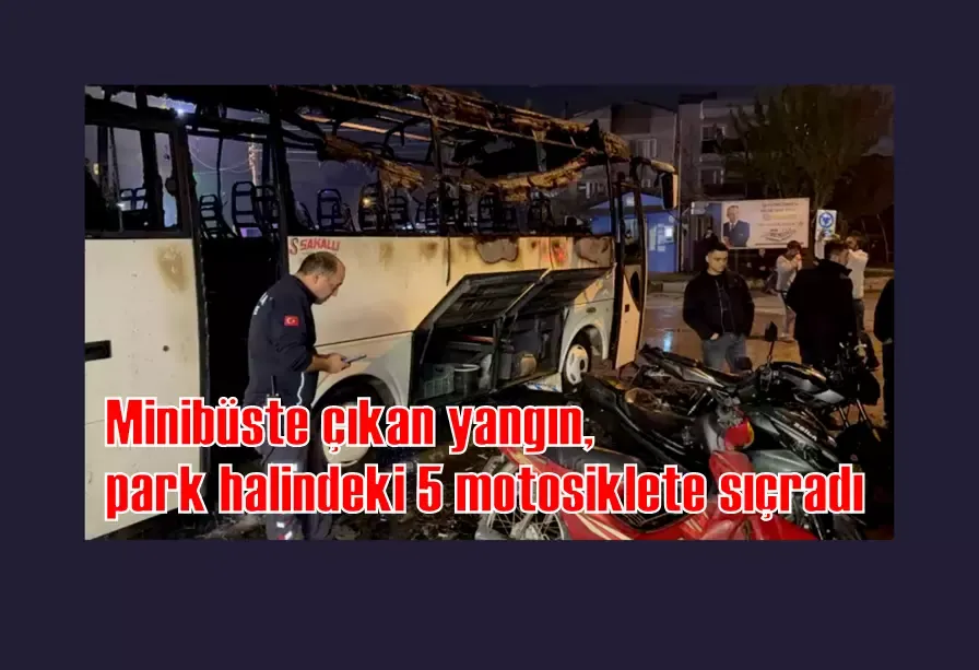 Minibüste çıkan yangın, park halindeki 5 motosiklete sıçradı