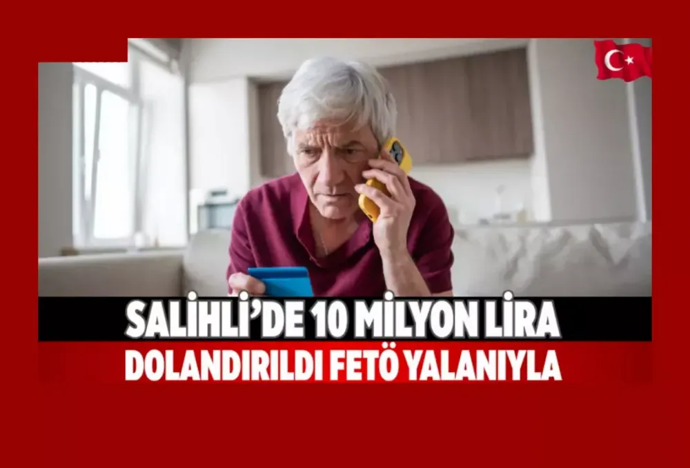 Olay, Salihli'ye bağlı Yörük Mahallesi'nde meydana geldi. İddiaya göre, İ.K.'yı (67) telefonla arayan şüpheliler "FETÖ terör örgütüne adınız karıştı" diyerek korkuttu. Bunun üzerine panik yaşayan vatandaş, kendilerini polis ve savcı olarak tanıtan dolandırıcılara, tüm birikimi olan 10 milyon lirasını teslim etti.