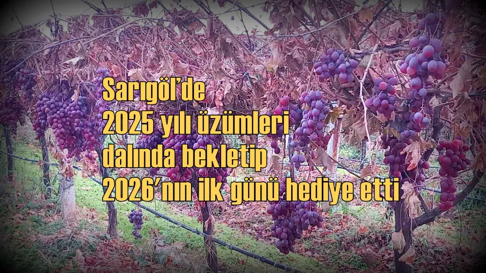 Sarıgöl’de 2025 yılı üzümleri dalında bekletip 2026'nın ilk günü hediye etti