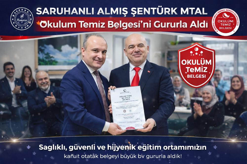 Saruhanlı Almış Şentürk Mesleki ve Teknik Anadolu Lisesi, sağlıklı, güvenli ve hijyenik bir eğitim ortamı oluşturma konusundaki titiz ve kararlı çalışmaları neticesinde “Okulum Temiz Belgesi” almaya hak kazandı. Okul yönetimi, öğretmenler, personel ve öğrencilerin iş birliği içinde yürüttüğü çalışmalar, örnek bir başarıyla taçlandırıldı.