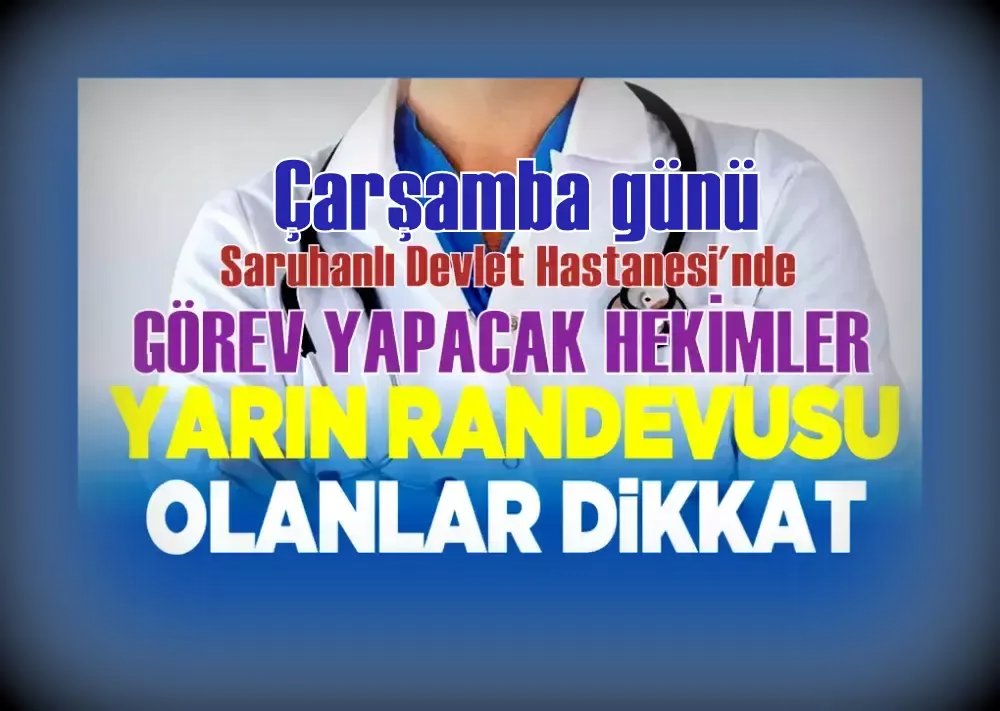 Saruhanlı Devlet Hastanesinde Çarşamba günü görev yapacak doktorlar