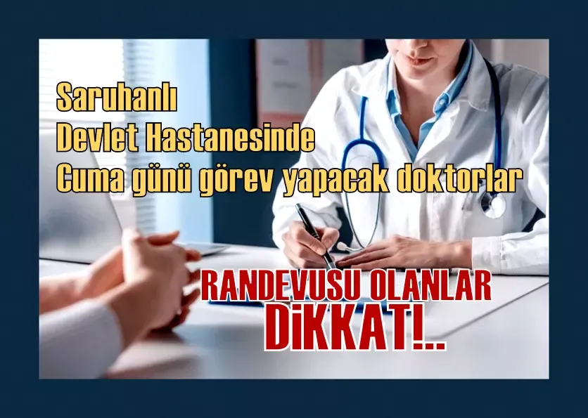 Saruhanlı Devlet Hastanesinde Cuma günü görev yapacak doktorlar