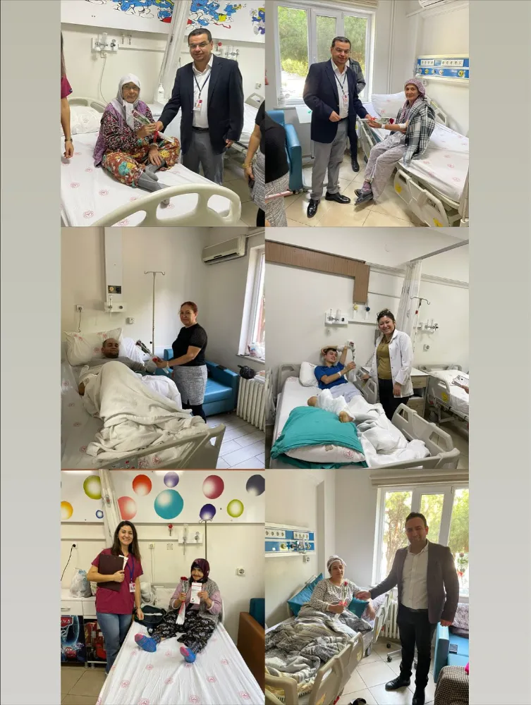 Saruhanlı Devlet Hastanesinde Hasta Hakları Günü kapsamında İlçe Sağlık Müdürü Tülay Ünlü Üresin’inde katılımlarıyla Hastane yönetimi tarafından hastanedeki yatan hastaları ziyaret ederek çiçek takdimi gerçekleştirdi.