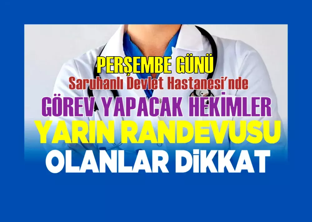Saruhanlı Devlet Hastanesinde Perşembe günü görev yapacak doktorlar