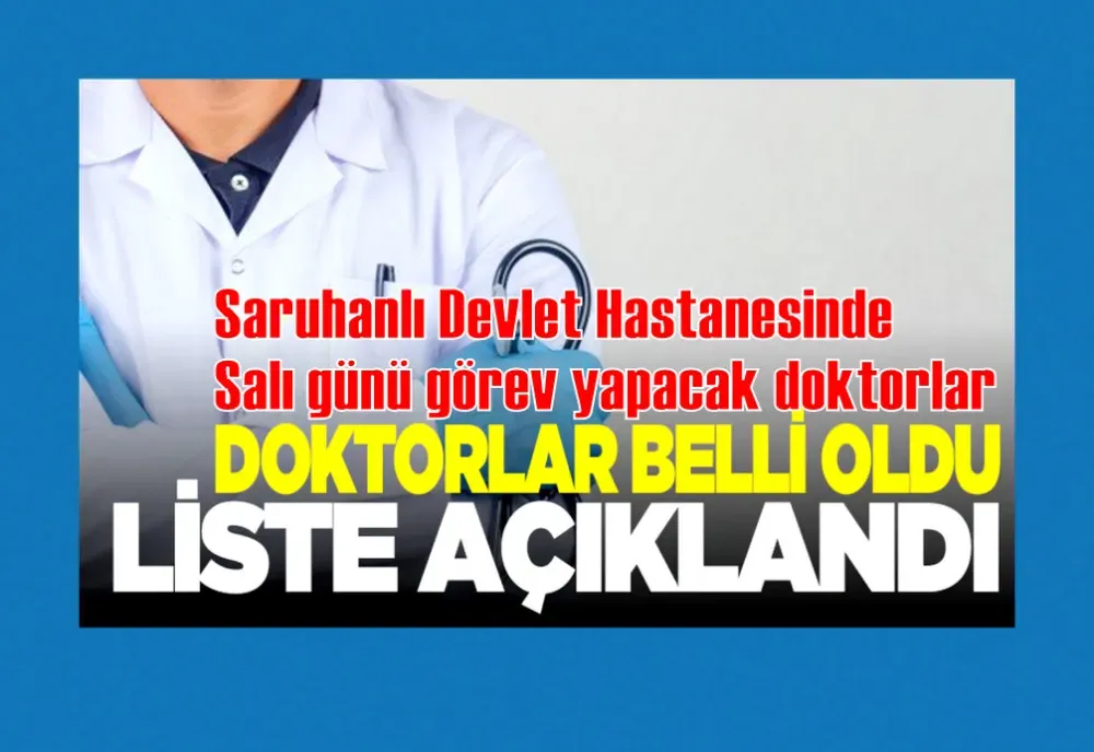 Saruhanlı Devlet Hastanesinde Salı günü görev yapacak doktorlar