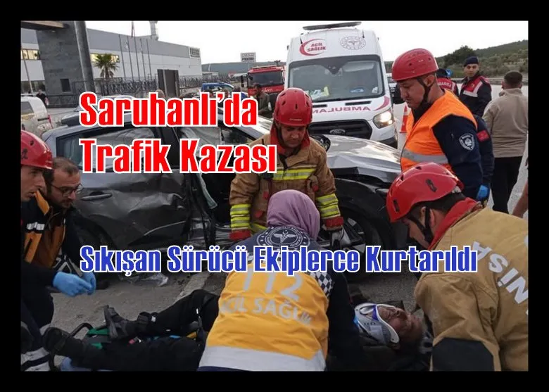 Saruhanlı’da Trafik Kazası: Sıkışan Sürücü Ekiplerce Kurtarıldı