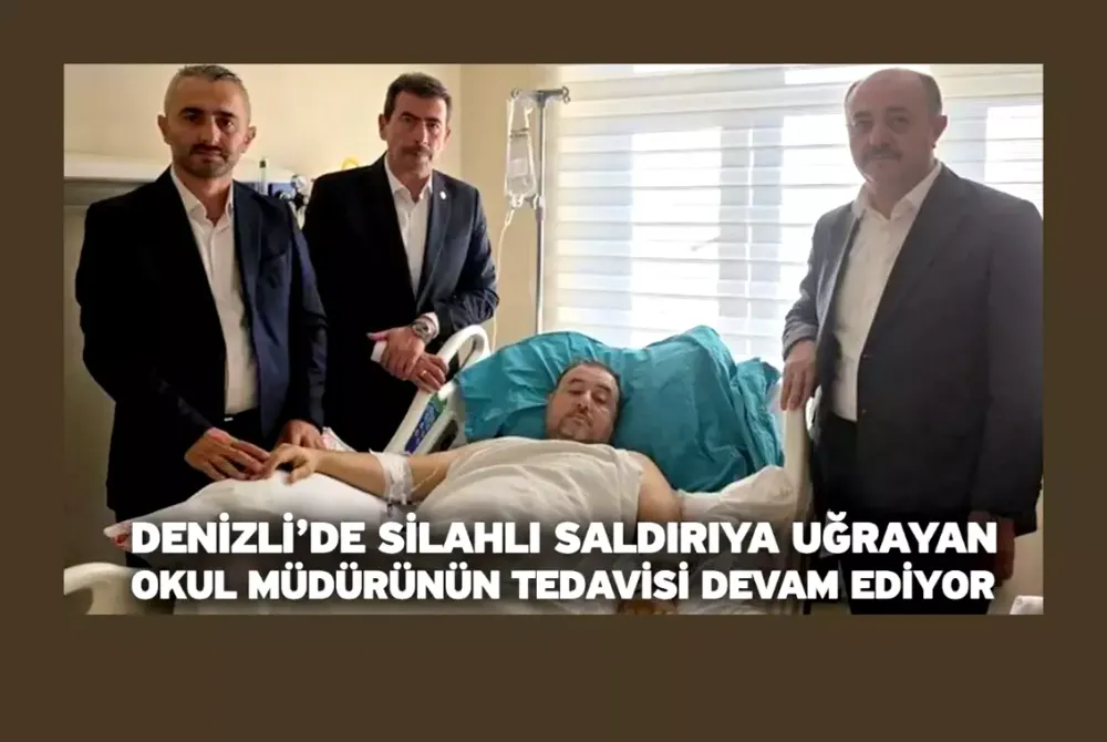 Denizli'nin Merkezefendi ilçesinde, okuldaki kantin işletmecisi tarafından silahlı saldırıya uğrayan okul müdürünün tedavisi hastanede devam ediyor.