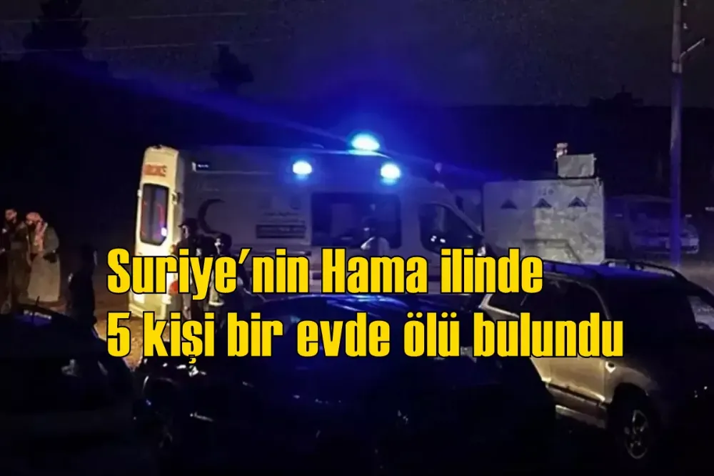 Suriye'nin orta kesiminde yer alan Hama şehrinde 5 kişi bir evde ölü bulundu. Suriyeli yetkililer, olaya ilişkin soruşturma başlatıldığını açıkladı.