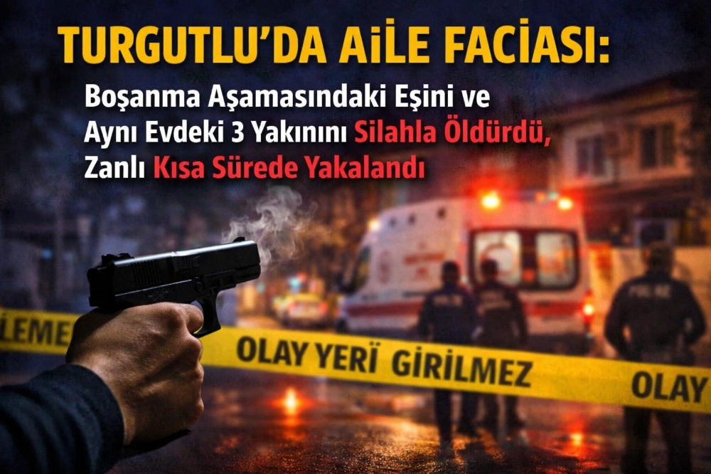 TURGUTLU’DA AİLE FACİASI: Boşanma Aşamasındaki Eşini ve Aynı Evdeki 3 Yakınını Silahla Öldürdü, Zanlı Kısa Sürede Yakalandı