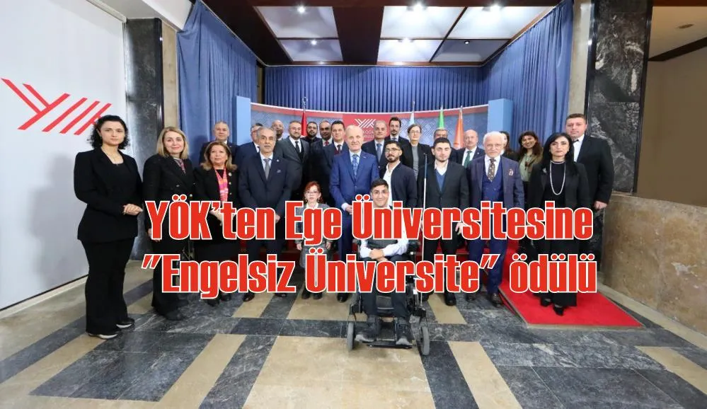 Yükseköğretim Kurulunda düzenlenen "2025 Engelsiz Üniversite Bayrak ve Program Nişanı Ödül Töreni"ne Ege Üniversitesi Rektörü Prof. Dr. Musa Alcı, Engelsiz Ege Koordinatörü Prof. Dr. Pelin Piştav Akmeşe ve Ege Üniversitesi İletişim Fakültesi Radyo Televizyon ve Sinema Bölümü 2. sınıf öğrencisi Ertuğrul Yavuz Taş da katıldı.