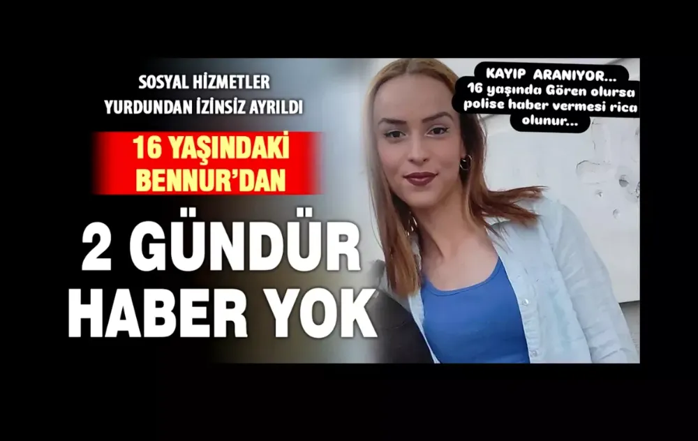 Denizli'de sosyal hizmetler yurdundan izinsiz olarak ayrılan 16 yaşındaki Bennur Gezgin'den 2 gündür haber alınamıyor.