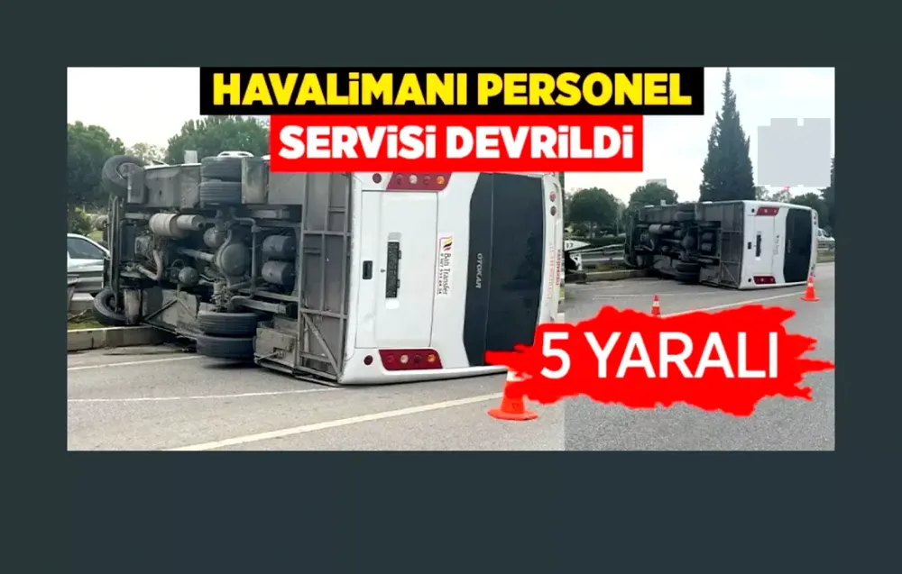 İzmir'in Gaziemir ilçesinde havalimanı personelini taşıyan servis aracının devrilmesi sonucu 5 kişi yaralandı.