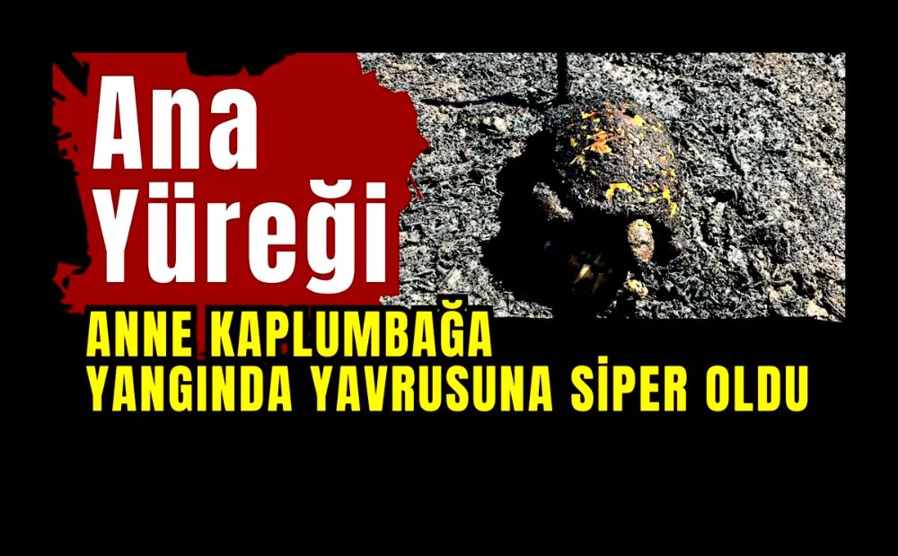 Ana yüreği Alevlere karşı yavrusuna siper olan anne kaplumbağa görenleri duygulandırdı
