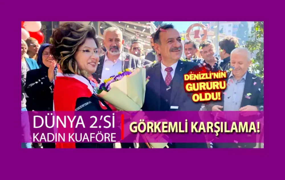 İngiltere'de düzenlenen Eurocup Bay Bayan Kuaförleri Dünya Kupasında ikinci olarak büyük bir başarıya imza atan Denizlili kadın kuaför, memleketinde coşkuyla karşılandı.