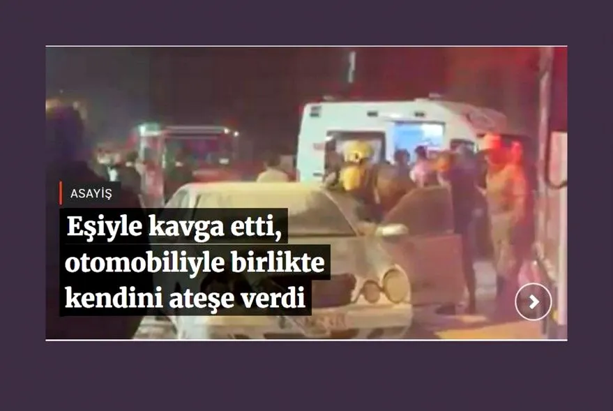 Eşiyle kavga etti, otomobiliyle birlikte kendini ateşe verdi