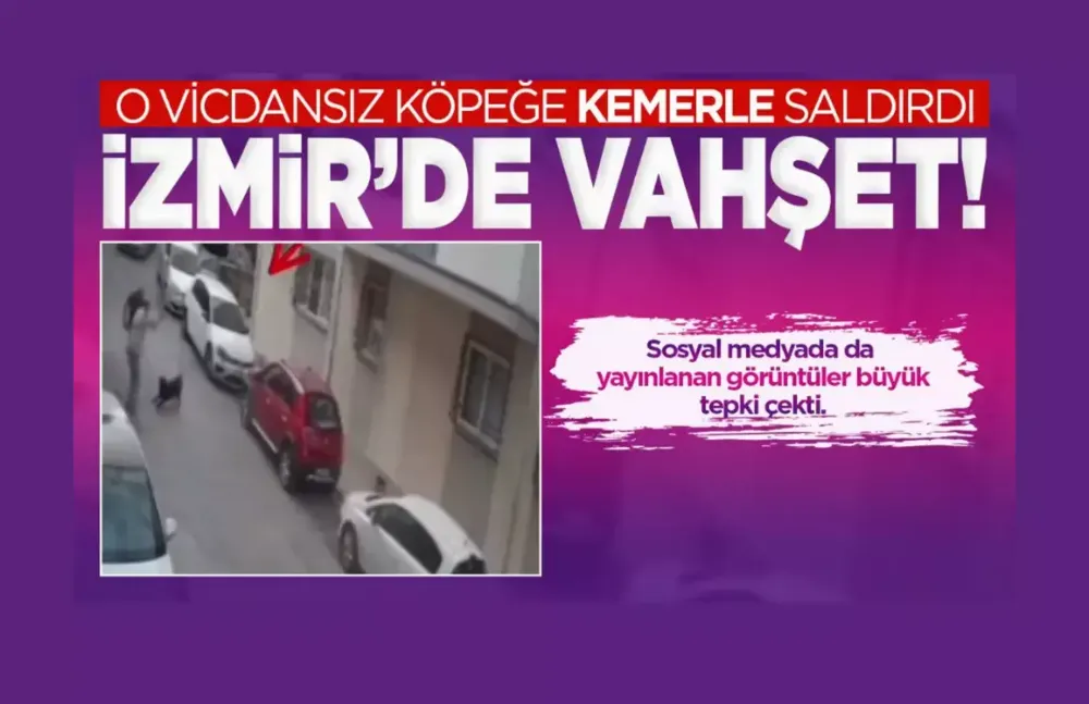 Olay, bugün Balçova'da meydana geldi. Sokakta yürüyen iki kişiden biri, belinden kemerini çıkardı ve yanına yaklaşan hayvana vurdu. O anlar sokaktaki güvenlik kamerasına da yansıdı. Sosyal medyada da yayınlanan görüntüler büyük tepki çekti.