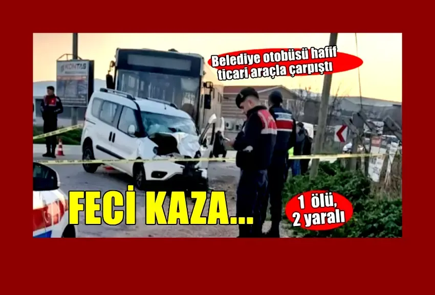 İzmir’in Menemen ilçesinde belediye otobüsü ile hafif ticari aracın kafa kafaya çarpışması sonucu meydana gelen trafik kazasında 1 kişi hayatını kaybetti, 2 kişi yaralandı.