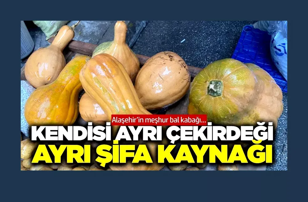 Manisa'nın Alaşehir ilçesinde kurulan semt pazarında satışa sunulan bal kabağı, hem kendisi hem de çekirdeğiyle şifa kaynağı olarak ilgi görüyor. Evrenli Mahallesi'nde tarlasında doğal yöntemlerle yetiştirdiği bal kabaklarını pazara getiren 67 yaşındaki üretici Mustafa Uslu, bal kabağının faydalarının saymakla bitmediğini söyledi.