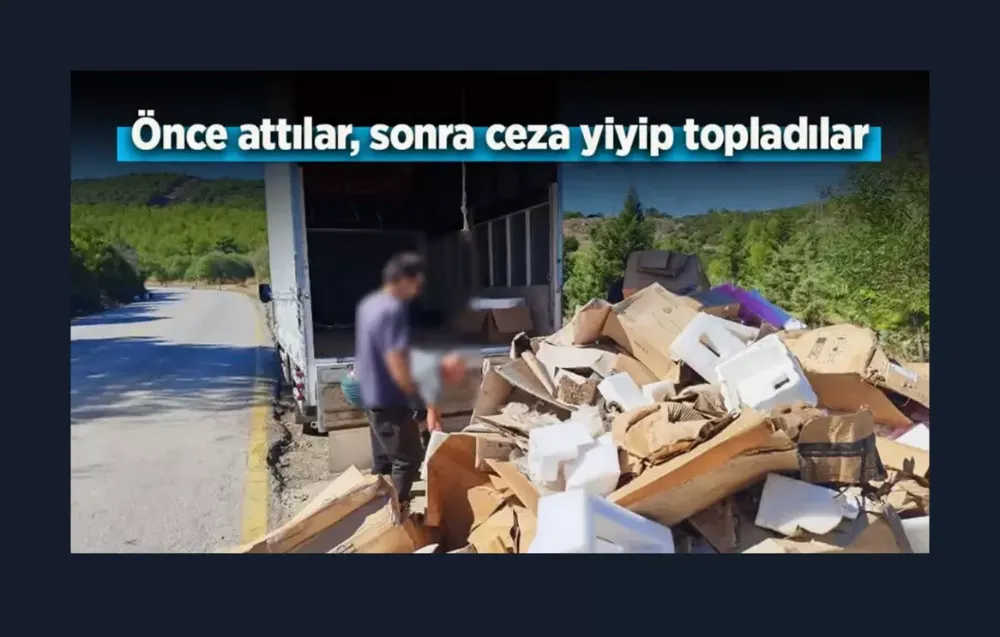Muğla’nın Bodrum ilçesinde yol kenarına kamyon dolusu atık döken şahıslar, zabıta ekiplerince tespit edildi. Çevreyi kirletmekten ceza yiyen şahıslar, döktüklerini geri topladı.