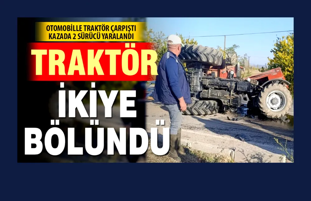 Denizli'de seyir halindeki otomobil ile traktörün çarpışması sonucunda traktör ikiye bölünürken otomobil ise kullanılamaz hale geldi. Kaza sonucunda 2 sürücü de yaralandı.