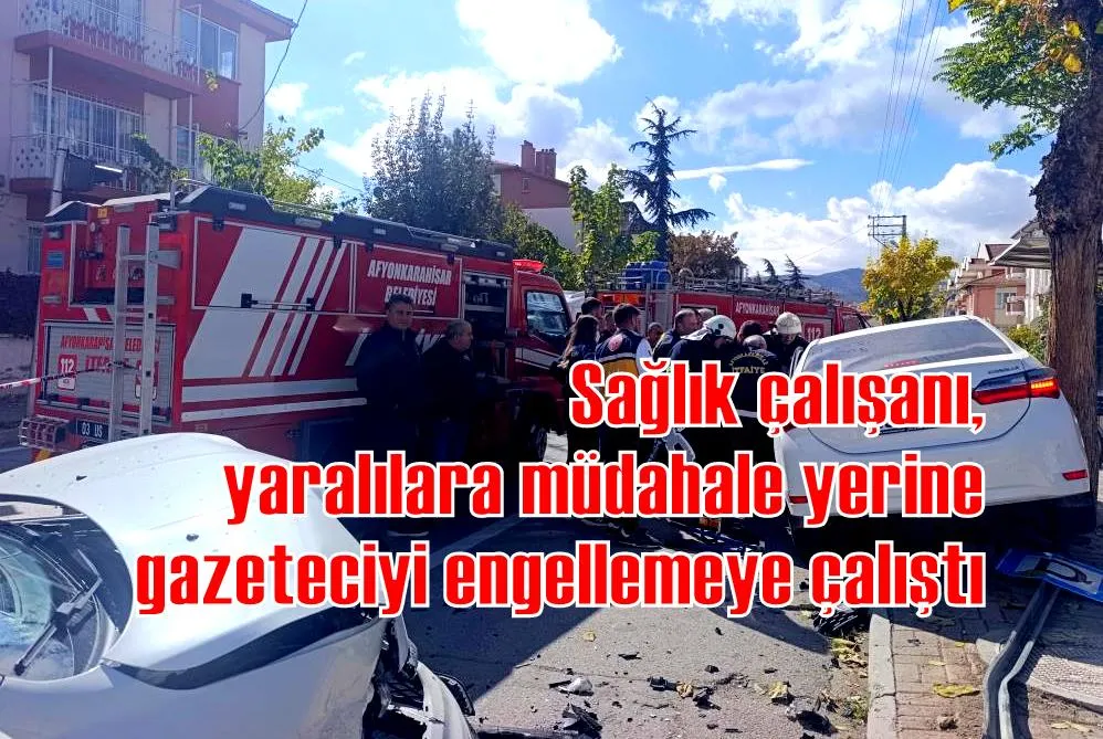 Afyonkarahisar'da 7 kişinin yaralandığı trafik kazasına müdahale için gelen bir sağlık personeli, yaralılara müdahale etmek yerine gazetecilere görüntü almaması konusunda adeta talimat vererek engellemeye çalıştı.