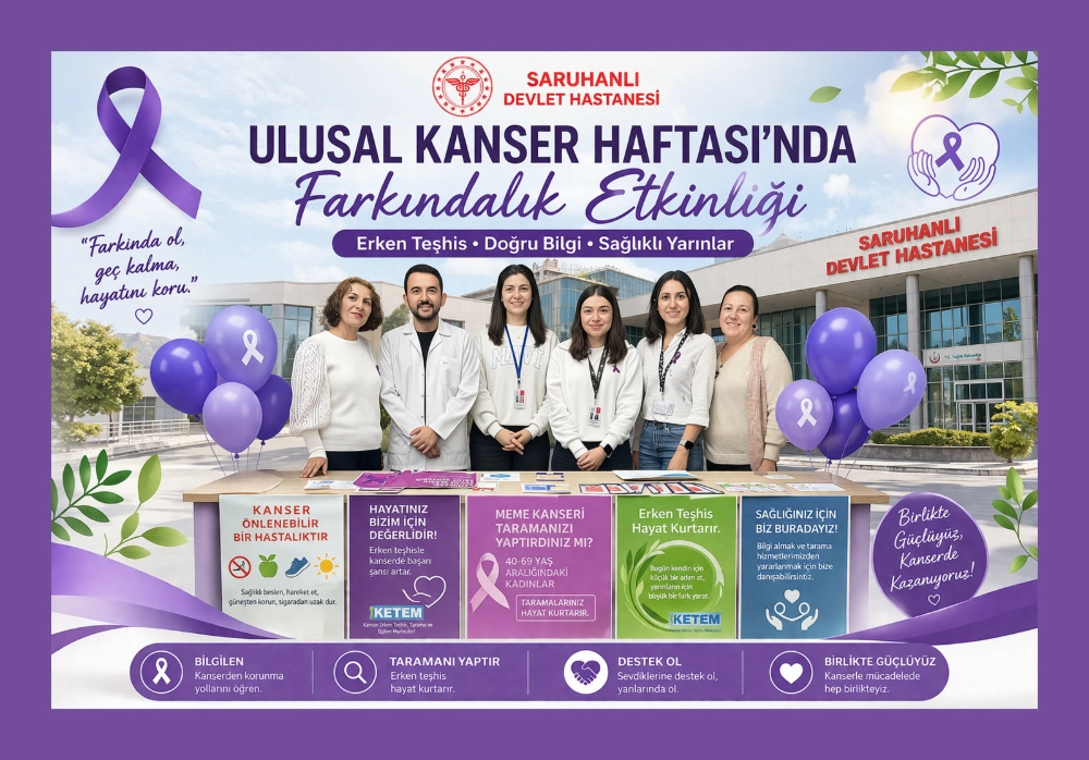Başhekim Orhan ayrıca, Saruhanlı Devlet Hastanesi olarak koruyucu sağlık hizmetlerine büyük önem verdiklerini vurgulayarak, “Vatandaşlarımızın kanser taramalarını ihmal etmemelerini öneriyoruz. Meme, rahim ağzı ve kolon kanseri başta olmak üzere birçok kanser türünde erken teşhis hayat kurtarır. Bu nedenle tüm halkımızı sağlıklı yaşam konusunda daha duyarlı olmaya ve düzenli taramalarını yaptırmaya davet ediyoruz” dedi.