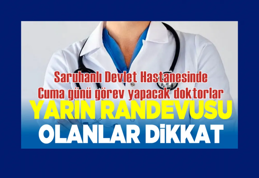 Saruhanlı Devlet Hastanesinde Cuma günü görev yapacak doktorlar