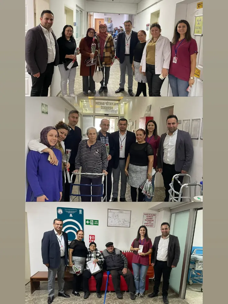Saruhanlı Devlet Hastanesinde Hasta Hakları Günü kapsamında İlçe Sağlık Müdürü Tülay Ünlü Üresin’inde katılımlarıyla Hastane yönetimi tarafından hastanedeki yatan hastaları ziyaret ederek çiçek takdimi gerçekleştirdi.