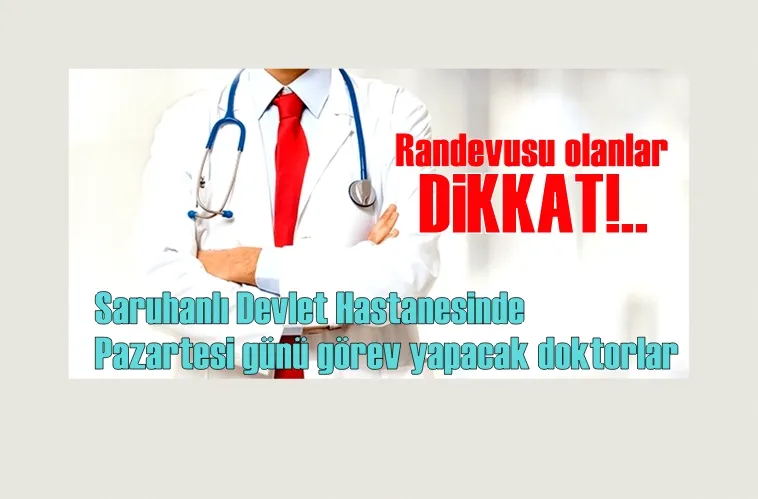 Saruhanlı Devlet Hastanesinde Pazartesi günü görev yapacak doktorlar