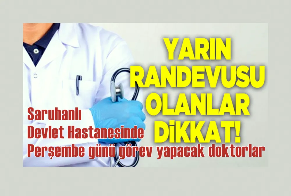Saruhanlı Devlet Hastanesinde Perşembe günü görev yapacak doktorlar