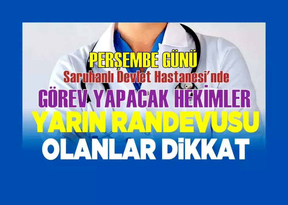 Saruhanlı Devlet Hastanesinde Perşembe günü görev yapacak doktorlar