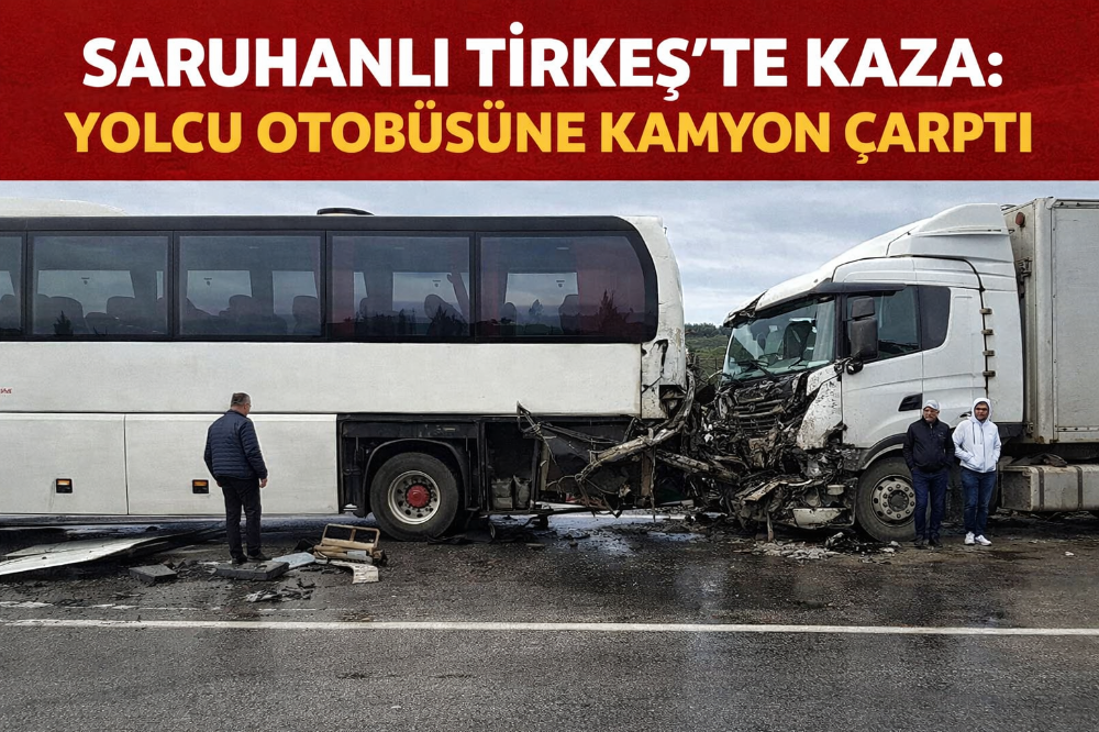 SARUHANLI TİRKEŞ’TE KAZA: YOLCU OTOBÜSÜNE KAMYON ÇARPTI