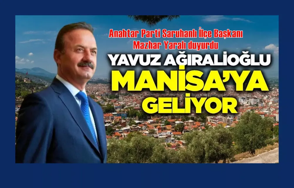 Anahtar Parti ilçe Başkanı Mazhar Yaralı tarafından yapılan açıklamada, “Kıymetli Manisalı hemşerilerimiz, milletimizin umudu Genel Başkanımız Sayın Yavuz Ağıralioğlu büyük buluşma için Manisa’ya geliyor. Tüm halkımız davetlidir” ifadelerine yer verdi.